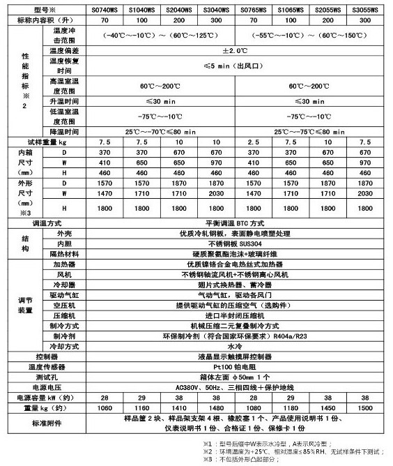 MC028系列溫度沖擊試驗(yàn)箱  一、產(chǎn)品簡介 用途:適用于對電工、電子和其他軍用設(shè)備在周圍大氣溫度急劇變化條件下的適應(yīng)性試驗(yàn)。 特點(diǎn): 1.充分吸收國外同類產(chǎn)品的優(yōu)點(diǎn),采用兩箱式上下結(jié)構(gòu),上箱體為高溫箱,下箱體為低溫箱。也可根據(jù)用戶要求設(shè)計(jì),制造左、右結(jié)構(gòu)的兩箱式溫度沖擊試驗(yàn)箱。也可以根據(jù)用戶要求采用單相式(或三箱式)結(jié)構(gòu)設(shè)計(jì)。 2.觸摸屏+PLC可編程邏輯控制器,RS485接口。 3.有工作室超溫、壓縮機(jī)過載、超壓、油壓超壓、風(fēng)機(jī)過載、缺相、壓縮機(jī)延時(shí)等保護(hù)功能,還有若干用戶選配的安全保護(hù)功能,如風(fēng)速過低,大門未關(guān)閉等等。 4.可選配遠(yuǎn)程監(jiān)控計(jì)算機(jī)及軟件,上位機(jī)實(shí)行冗余設(shè)計(jì),可連接PC電腦,也可連接觸摸屏控制器。上位機(jī)關(guān)機(jī)不影響系統(tǒng)控制。 二、技術(shù)參數(shù):