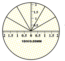 5、分劃板最小格值0.05mm,分劃板最大量程 3mm(50倍帶刻度),所有光學(xué)鏡片均鍍?cè)鐾改?SPAN lang=EN-US>